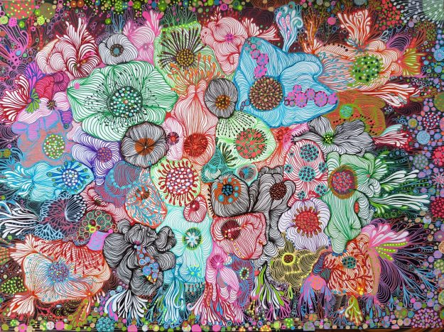 collage sobre print de un dibujo digital realizado por mi,he añadido,recortes de fotos y tambien he pintado encima con rotuladores acrílicos y de alcohol.